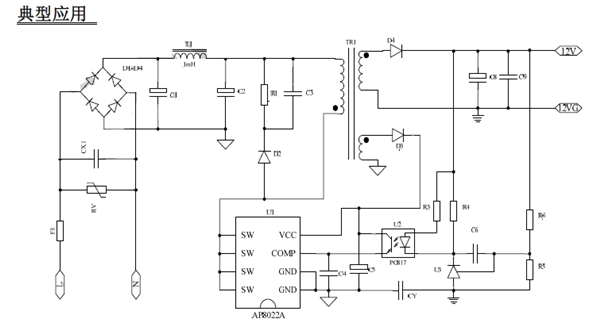 AP8022A芯片内部集成了脉宽调制控制品和功率MOSFET,适用于小功率离线开关电源,该芯片提供了完整的智能保护功能,包括过流保护,过压保护,欠压保护,过温保护,突发模式能够降低系统处于待机模式的功耗。该芯片还内置高压启动模块,保证系统能迅速启动。