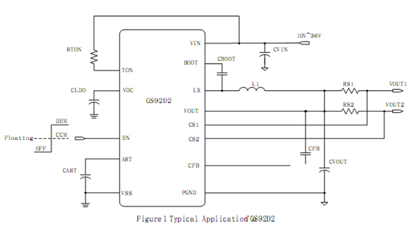 GS92D2是一款同步降压转换器功能包括输入电压范围宽双通道准确(OCP内置钢丝下降补偿后双方的保护。