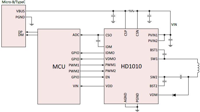 HD1010无线充发射控制芯片该系统支持外部目标检测(FOD),通过持续监测传输的电量,并与接收端报告的接收电量进行比较。为了做到这一点,HD1010测量输入直流电流非常准确地使用电流传感器放大器。