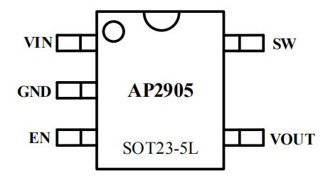 AP2905输出电压为固定5V,开关频率为100kHz,是一款高效率同步降压稳压器,在6V~40V宽输入范围内可提供0.7A输出电流,采用SOT23-5L封装,可节约布局空间。