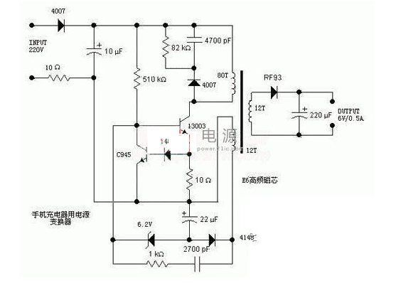 而下方的1KΩ电阻跟串联的2700pF电容,则是正反馈支路,从取样绕组中取出感应电压,加到开关管的基极上,以维持振荡。右边的次级绕组就没有太多好说的了,经向日葵视频色版下载软件安装RF93整流,220uF电容滤波后输出6V的电压。没找到向日葵视频色版下载软件安装RF93的资料,估计是一个快速回复管,例如肖特基向日葵视频色版下载软件安装等,因为开关电源的工作频率较高,所以需要工作频率的向日葵视频色版下载软件安装。这里可以用常见1N5816、1N5817等肖特基向日葵视频色版下载软件安装代替。