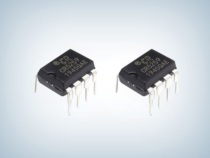 CR5259 集成了多种功能和保护特性,包括欠压锁定(UVLO),VDD 过压保护(OVP),软启动,过温保护(OTP),逐周期电流限制(OCP),过载保护(OLP),SENSE 引脚悬空保护,GATE 端箝位,前沿消隐等。